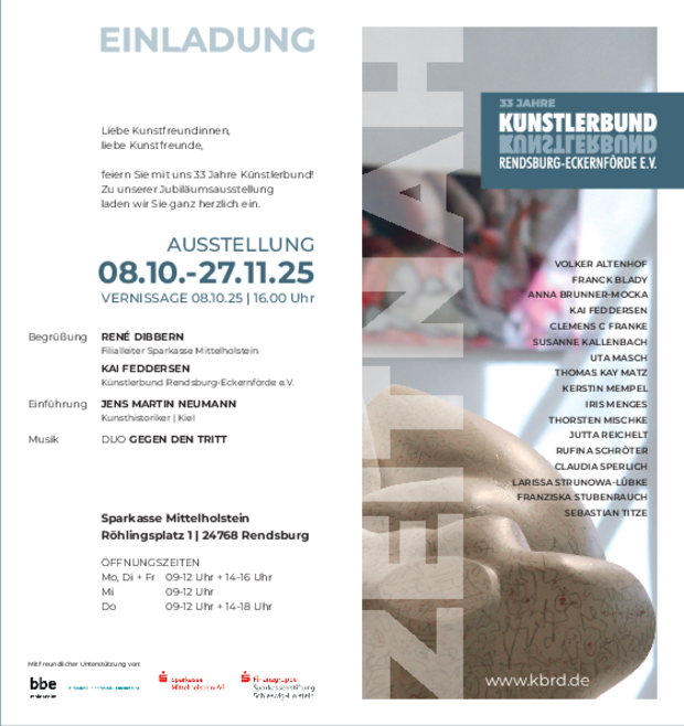 feiern Sie mit uns 33 Jahre Künstlerbund! Zu unserer Jubiläumsausstellung laden wir Sie ganz herzlich ein.
